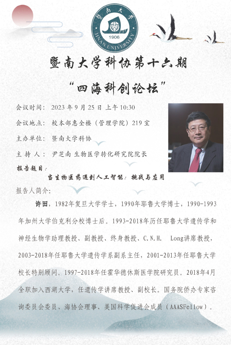 学术报告 — 许田:当生物医药遇到人工智能:挑战和应用