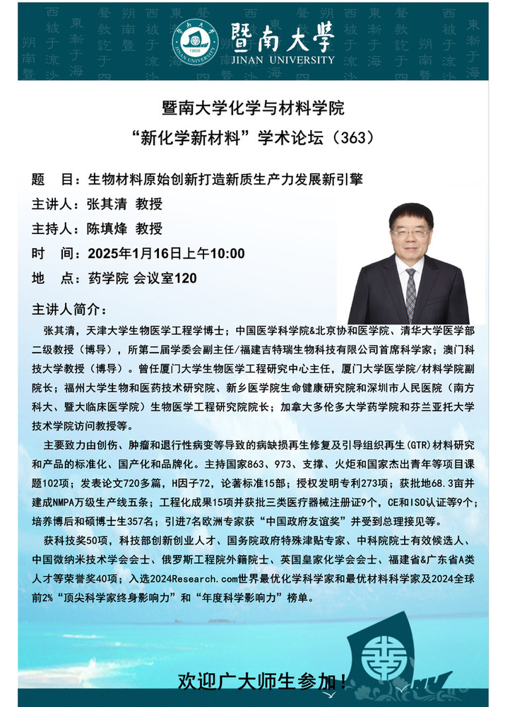 学术报告 — 张其清:生物材料原始创新打造新质生产力发展新引擎