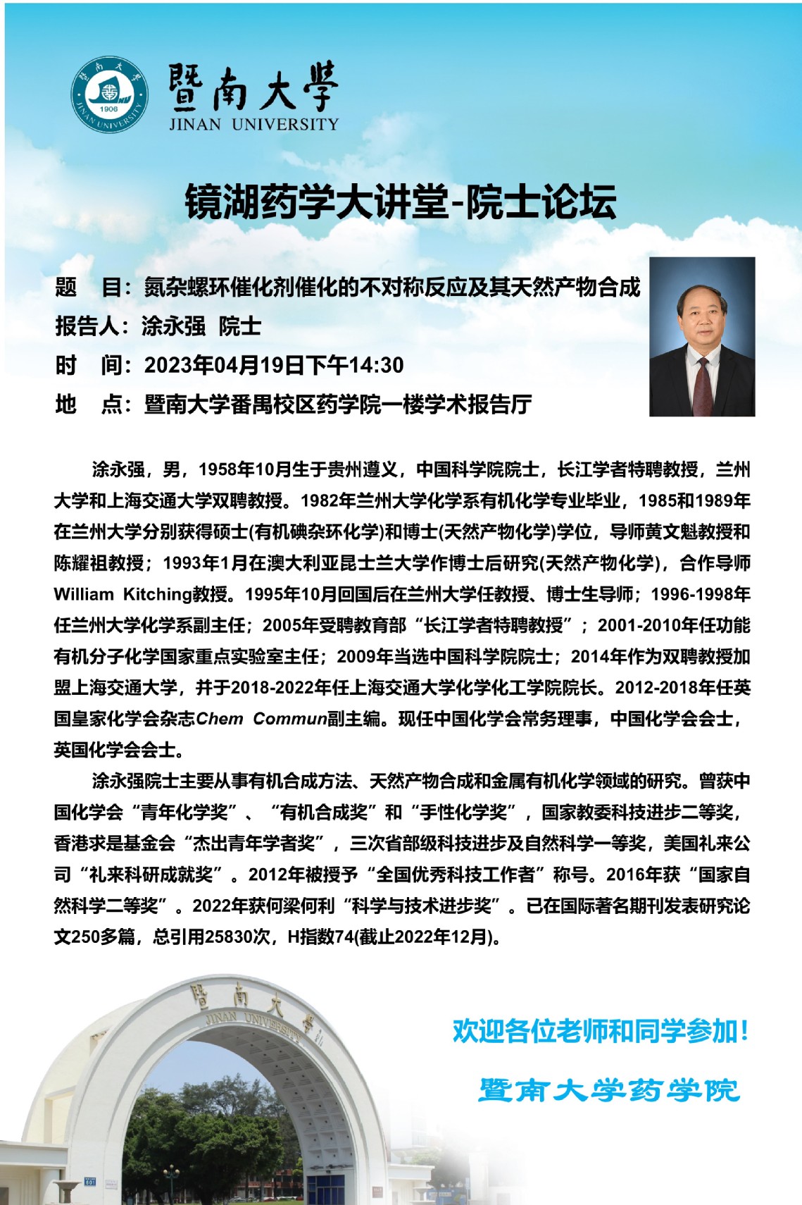 学术报告 — 涂永强:氮杂螺环催化剂催化的不对称反应及其天然产物合成