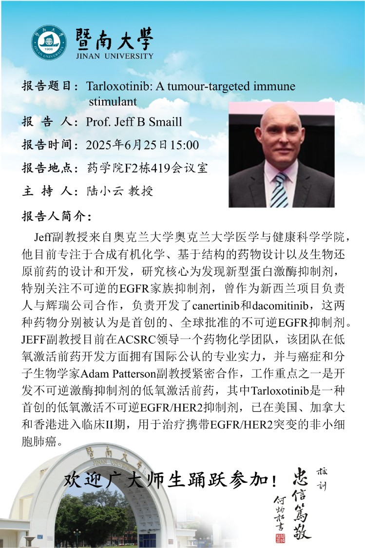 学术报告 — Prof. Jeff B Smaill:Tarloxotinib:A tumour-targeted immune stimulant