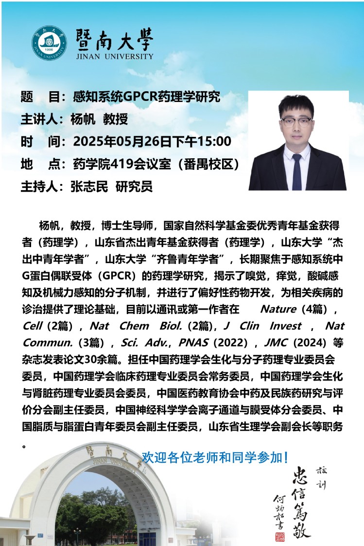 学术报告 — 杨帆:感知系统GPCR药理学研究
