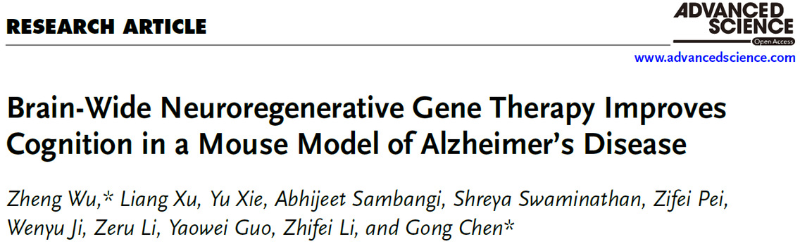 吴政/陈功教授团队Advanced Science:脑内原位神经再生基因疗法显著改善阿尔茨海默病小鼠认知功能