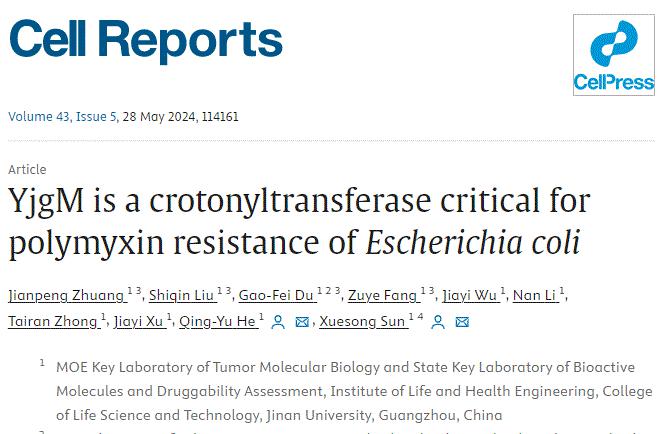 孙雪松/何庆瑜团队在Cell reports和Journal of Hazardous Materials揭示细菌耐药新机制