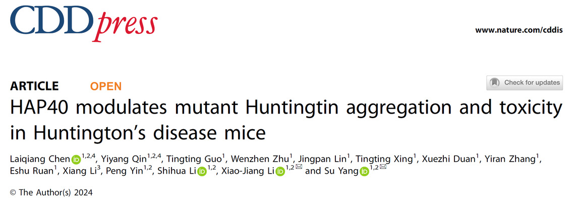杨甦/李晓江团队揭示HAP40在亨廷顿舞蹈症中的作用